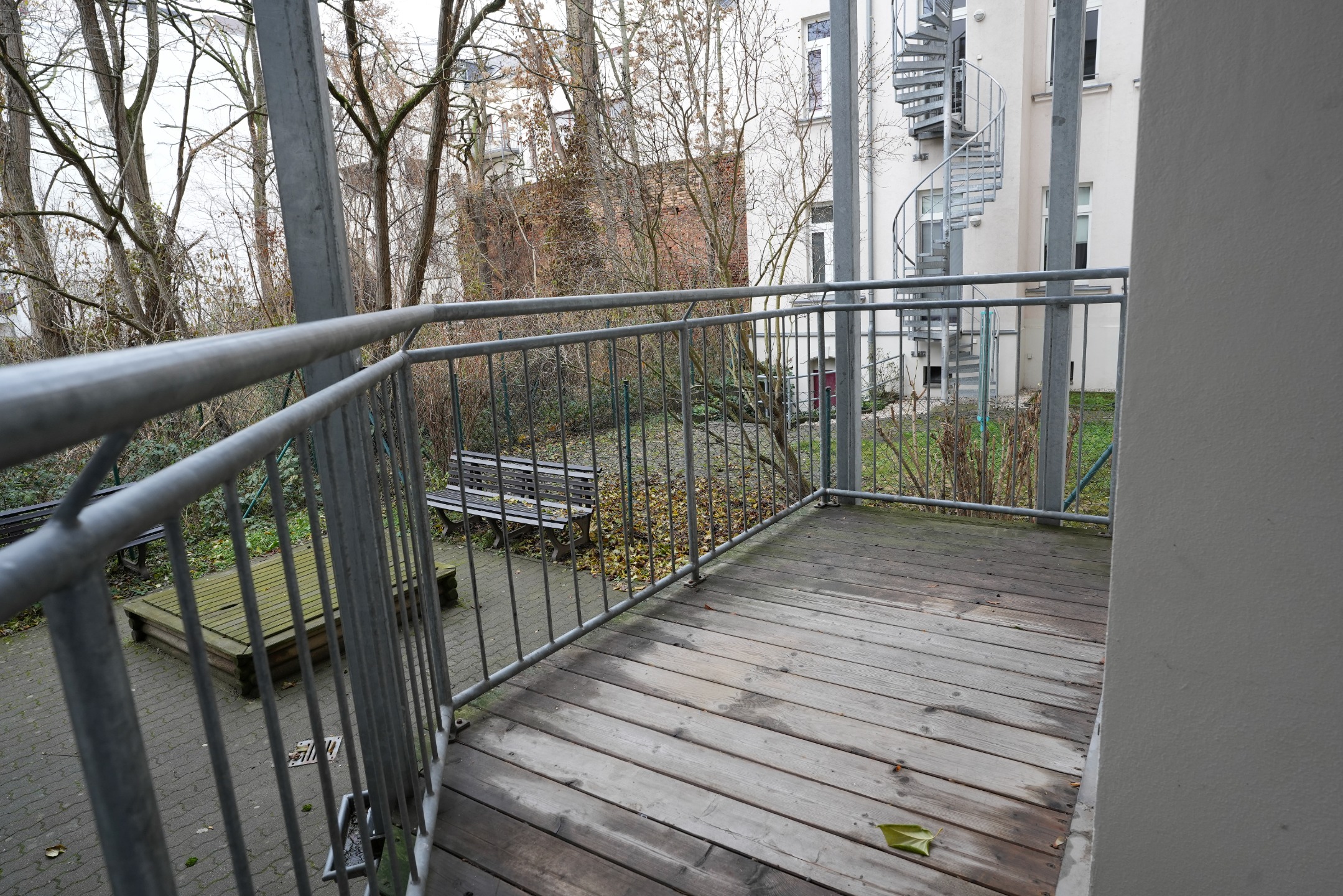 view of the quiet street, the balcony faces the inner courtyard. The