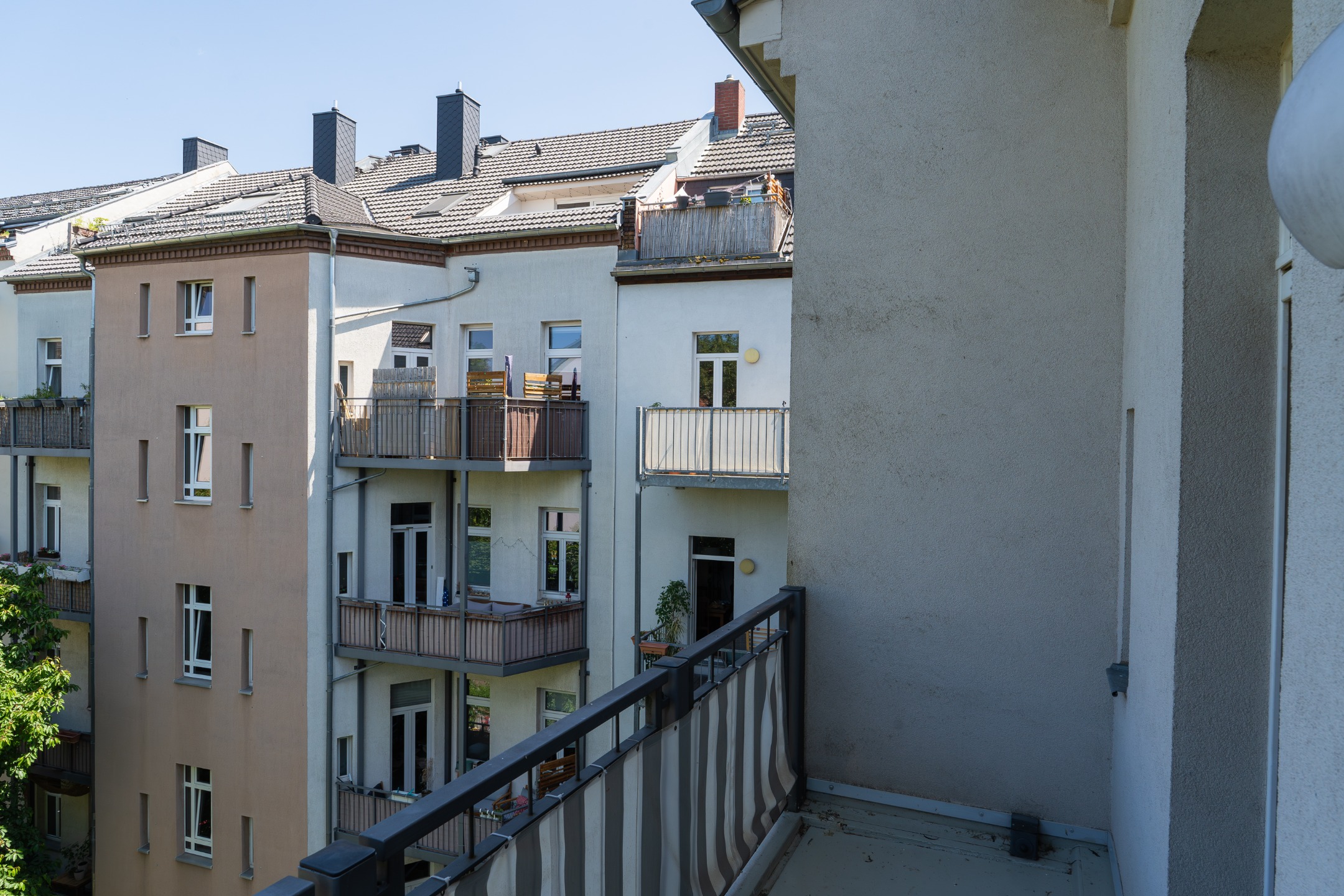 Alle Wohnungen vom EG bis in die 3 Etage haben den Balkon in den grünen und ruhigen Innenhof, das ausgebaute Dachgeschoß hat keine Terrassen. Die klassischen Altbau-Stielelemente wie Stuckfassade, Holzkassetteninnentüren und z.T. Parkett und Stuck in den einzelnen Wohnungen sind vorhanden und wurden fachgerecht aufgearbeitet, die Fenster wurden ausgetauscht und sind aus Holz mit Isolierverglasung.
