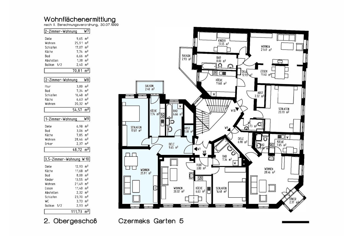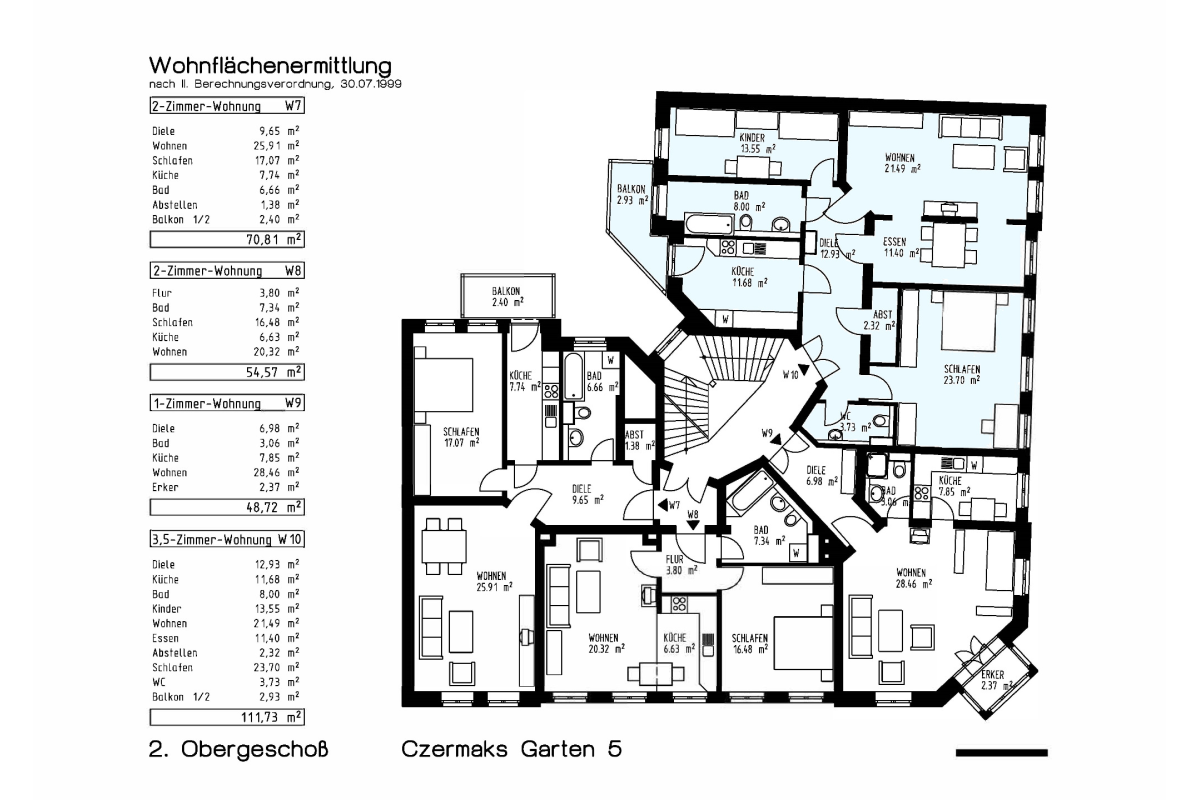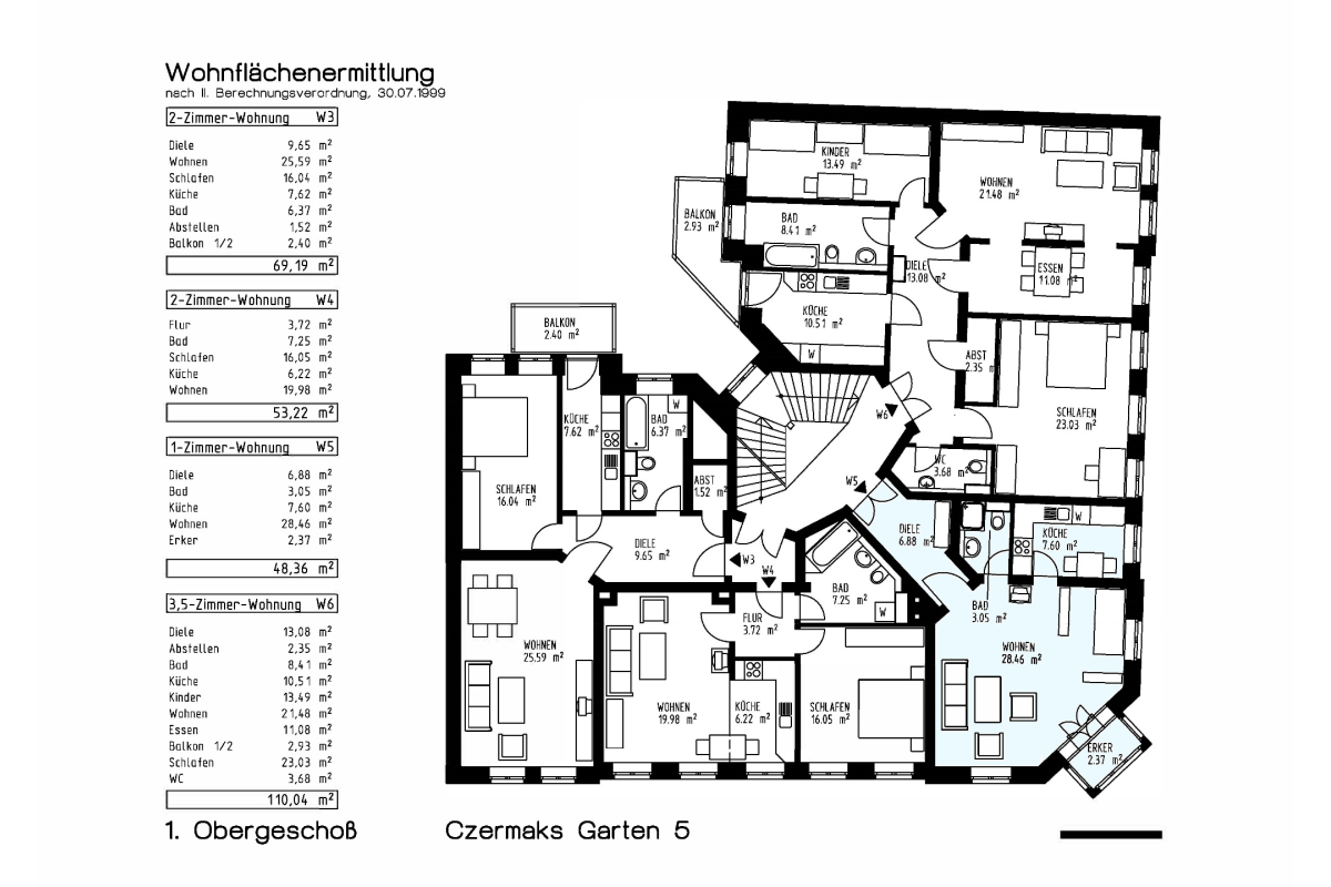 Die Mehrheit der Wohnungen vom EG bis in die 3 Etage haben einen Balkon in den grünen und ruhigen Innenhof oder einen Erker zur Straße , das ausgebaute Dachgeschoß hat