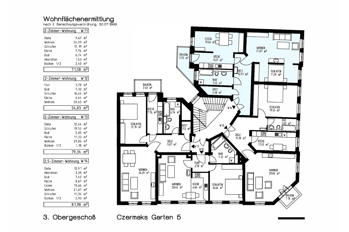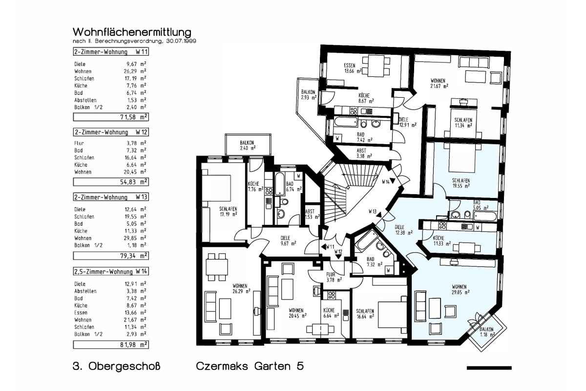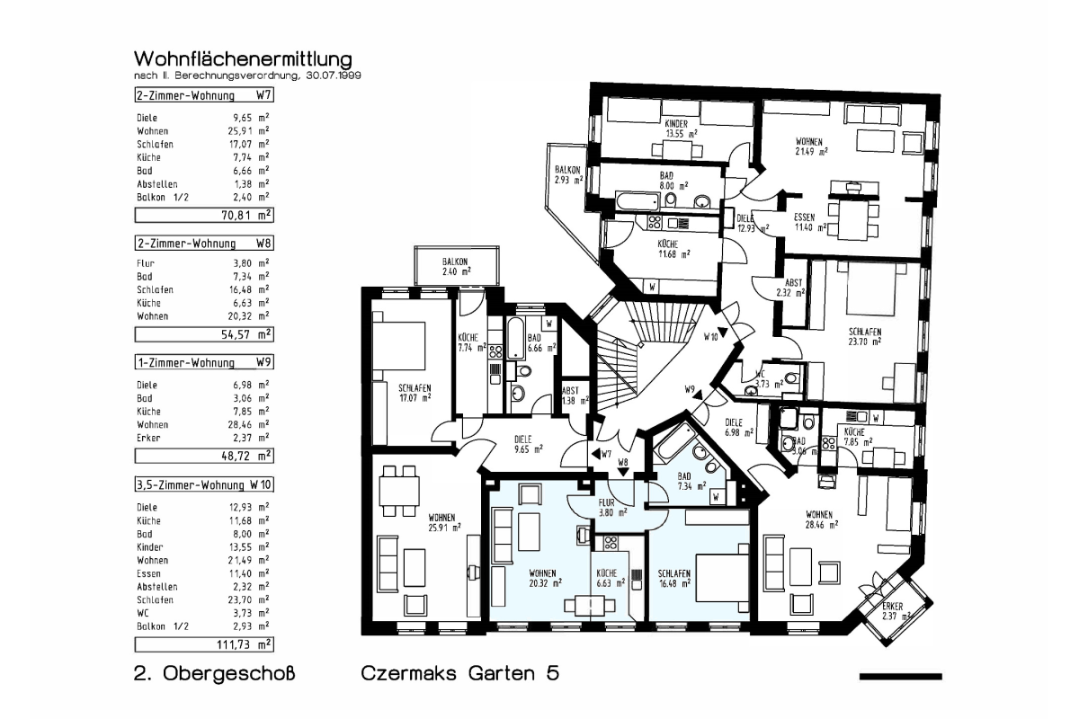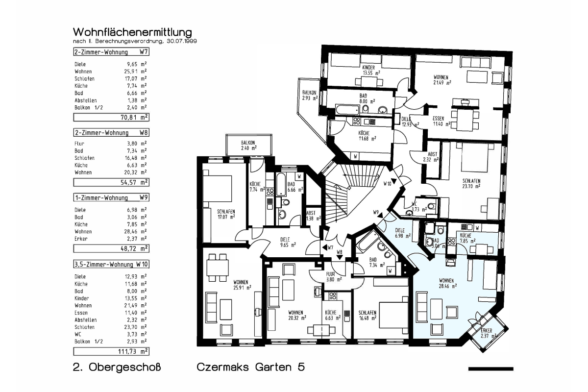 Die Mehrheit der Wohnungen vom EG bis in die 3 Etage haben einen Balkon in den grünen und ruhigen Innenhof oder einen Erker zur Straße , das ausgebaute Dachgeschoß hat