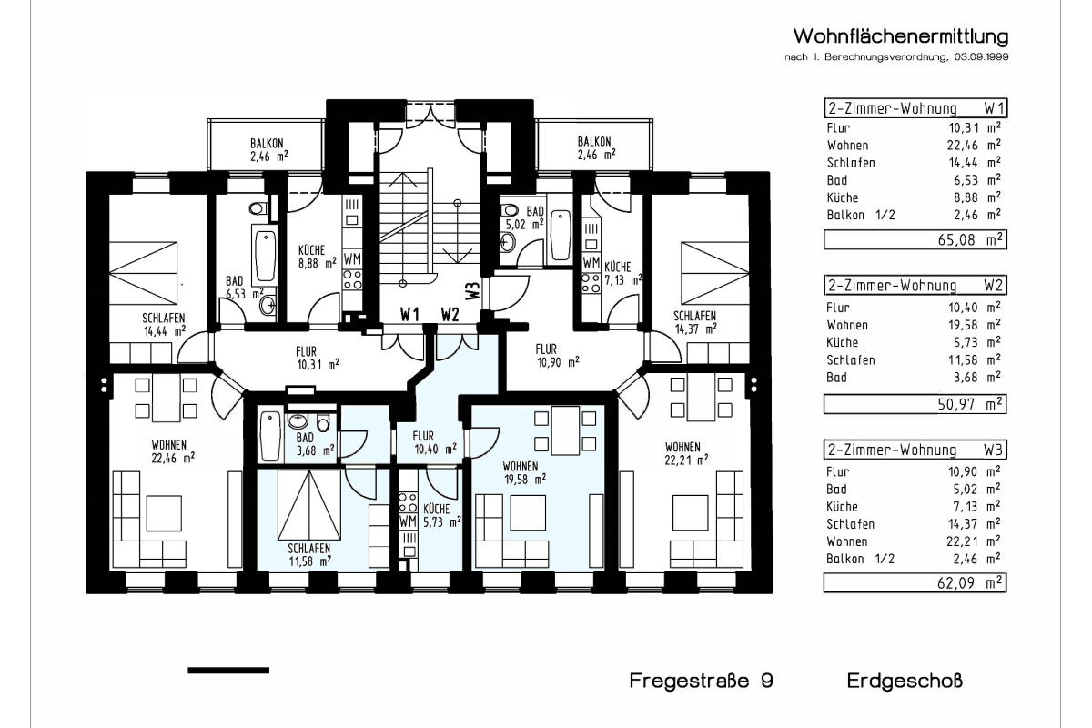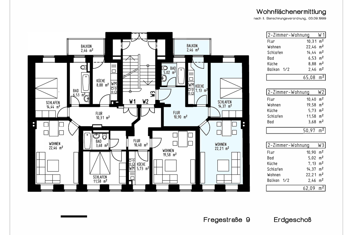 Der Großteil der Wohnungen vom EG bis in die 3 Etage hat