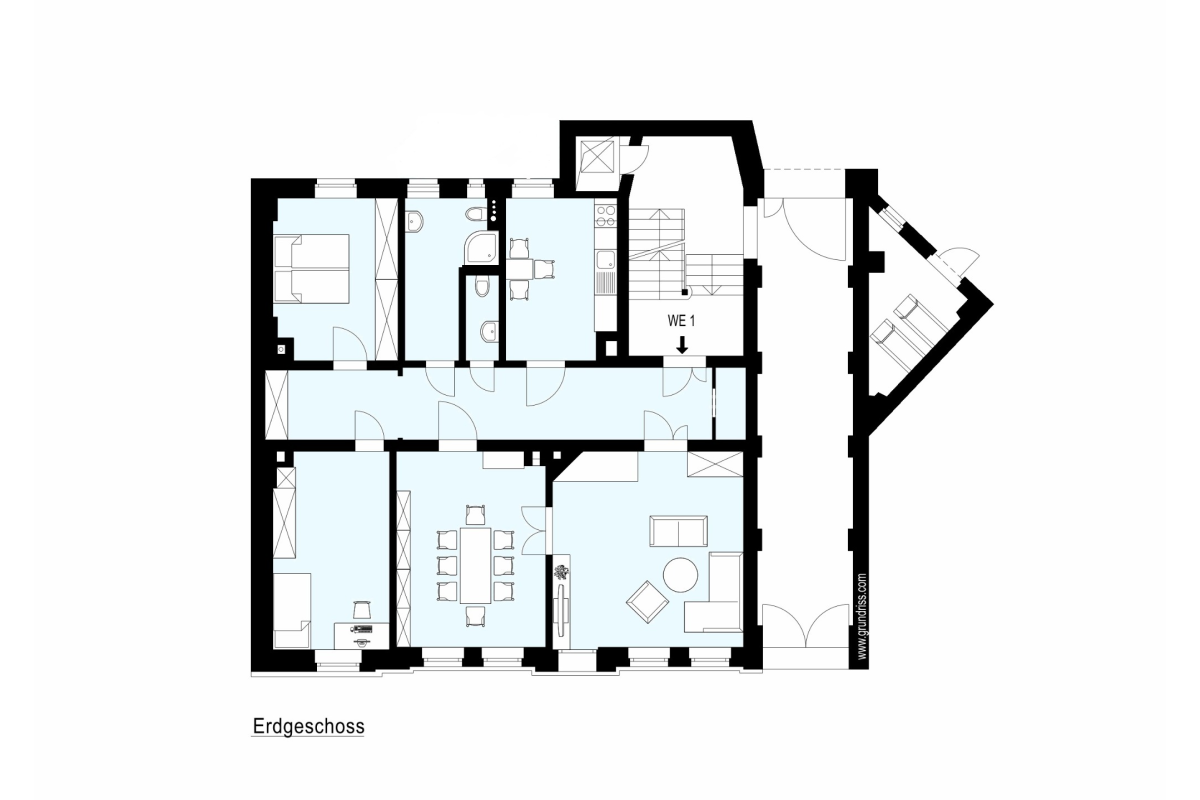 Der Gründerzeitaltbau wurde Mitte der 1990er vollständig saniert